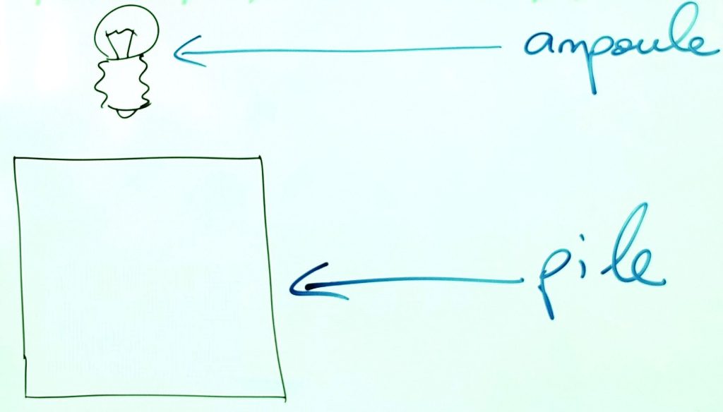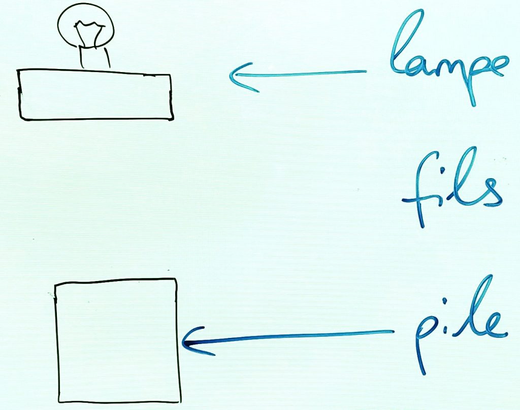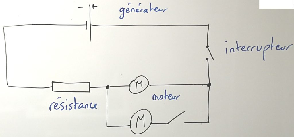 consigne : réaliser le circuit du schéma dessiné au tableau