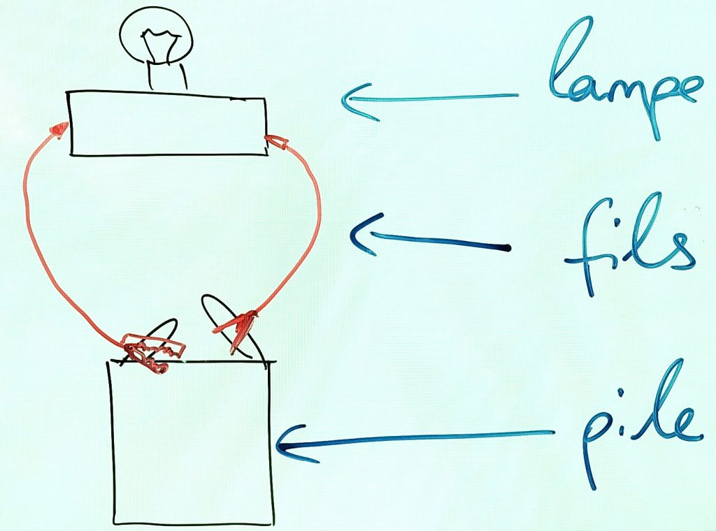 consigne (ne pas recopier) : allumer la lampe, dessiner le circuit, annoter le dessin