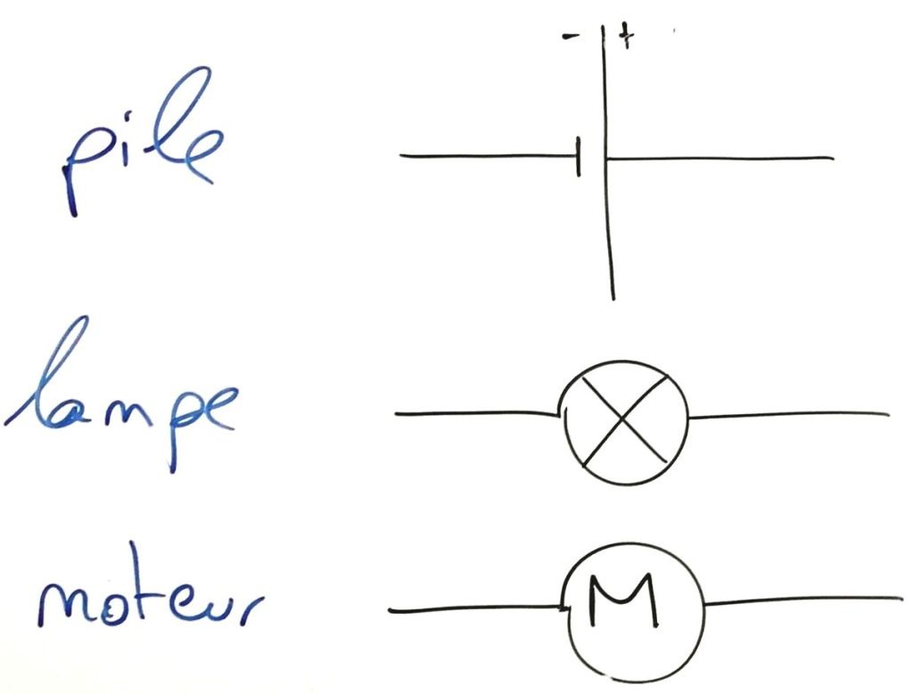 consigne : dessiner le schéma du circuit avec une lampe allumée
